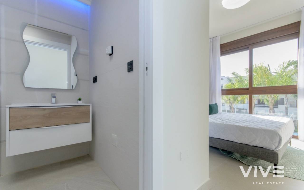 NEW BUILD RESIDENTIAL OF BUNGALOW APARTMENTS IN LOS BALCONES, TORREVIEJA New Build residential complex with magnificent pink salt lake views in Los Balcones. Complex consist of 104 bungalow apartments with 2 and 3 bedrooms, top floor bungalow has private solariums with panoramic views to the salt lake and ground floors bungalows have big terraces overlooking the green area. These bungalows share beautiful green areas and 2 large swimming pools. Optional underground parking and storage spaces are available. This residential offers modern design, selected materials, apartments finished to very highest specification using only top quality materials. The Residential will be built up to a hillside, in this way the view and also the air is clear and unique quality. Los Balcones located just outside Torrevieja with all accessible services, just 5 minutes from Playa de Los Náufragos, supermarkets, the school and the La Zenia Boulevard Shopping Centre, and a minute from Torrevieja University Hospital. Furthermore you will find 4 golf courses within a short drive, including the award winning Las Colinas Golf & Country Club. Complex located 40 minutes from Alicante airport and 1 hour Murcia - Corvera airport.