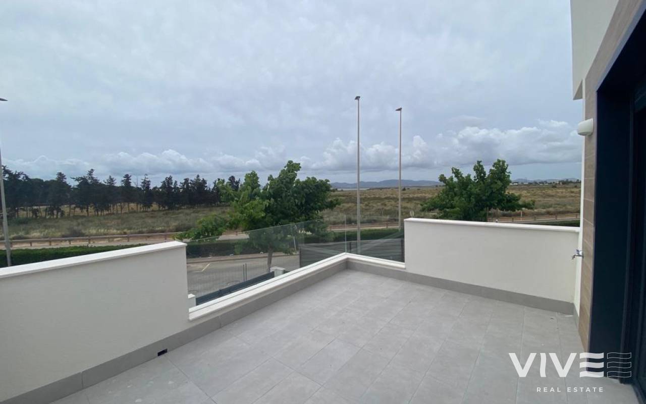 Newly Built Villas with Private Pool in Los Alcázares, Costa Cálida Exclusive Modern Villas Just 700 Metres from the Sea Discover this exclusive residential development of 9 new build villas in Los Alcázares, one of the most sought-after locations on the Costa Cálida due to its proximity to the sea, relaxed atmosphere and excellent amenities. Each villa has a private pool, separate covered garage and has been designed to offer comfort, functionality and contemporary style. Duplex Design with Solarium and Ideal Orientation The properties are distributed over two floors and have 3 bedrooms and 2 bathrooms, a fully equipped open-plan kitchen, a spacious living-dining room, a terrace and garden on the ground floor, a terrace on the first floor and a private solarium on the roof with a summer kitchen. Thanks to their different orientations, you can enjoy the sun all day long, all year round. High-quality fittings These villas are designed with top quality materials and offer: Private swimming pool with outdoor shower Kitchen equipped with appliances: fridge, oven, built-in microwave, ceramic hob, extractor hood and integrated dishwasher Built-in wardrobes with drawers Fully fitted bathrooms with mirror cabinet and shower screens Pre-installation for air conditioning Installation of 2 solar panels Summer kitchen on the solarium Covered parking space on the plot Unbeatable location on the Costa Cálida Located just 700 metres from the beaches of the Mar Menor, these homes allow you to enjoy a unique natural environment with calm and warm waters. Los Alcázares combines a relaxed lifestyle with all amenities close at hand: supermarkets, restaurants, sports facilities and health centres. Ideal for both permanent residence and holidays. Distances to points of interest Mar Menor beach: 0.7 km Golf courses (Roda, La Serena, Mar Menor Golf): between 3 and 10 km Murcia International Airport: 30 km Cartagena: 22 km Dos Mares shopping centre: 13 km Los Alcázares marina: 2 km Your haven of sunshine and tranquillity in the Mediterranean These villas offer the perfect combination of modern design, privacy, comfort and a privileged location. Contact us today and schedule your visit to discover your next home by the sea.