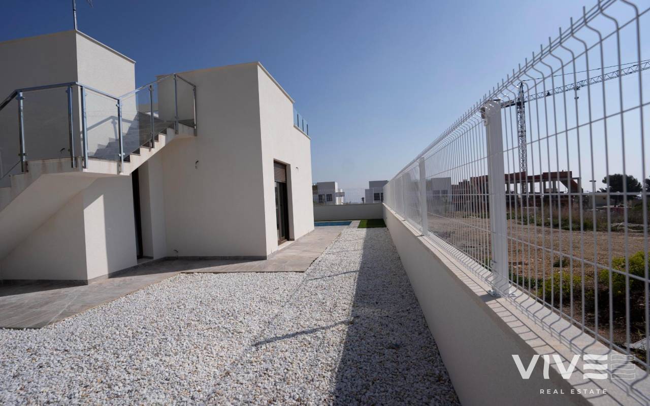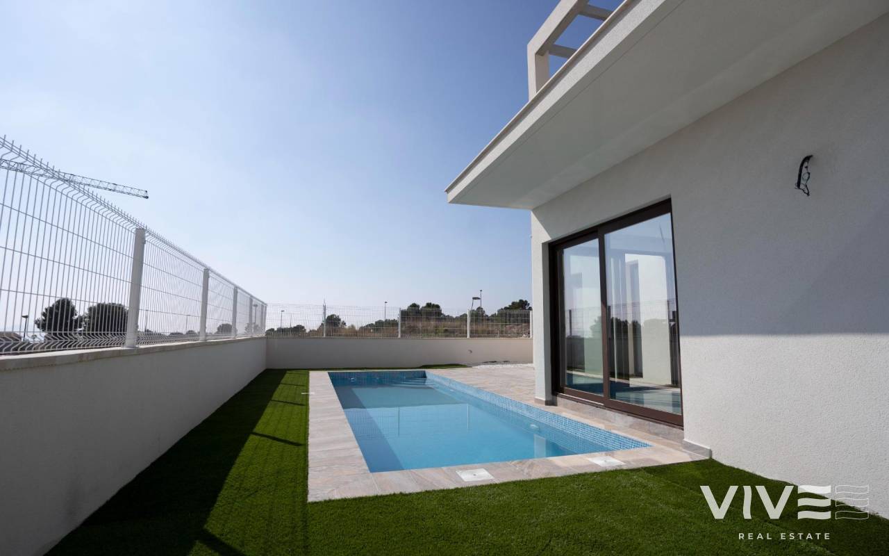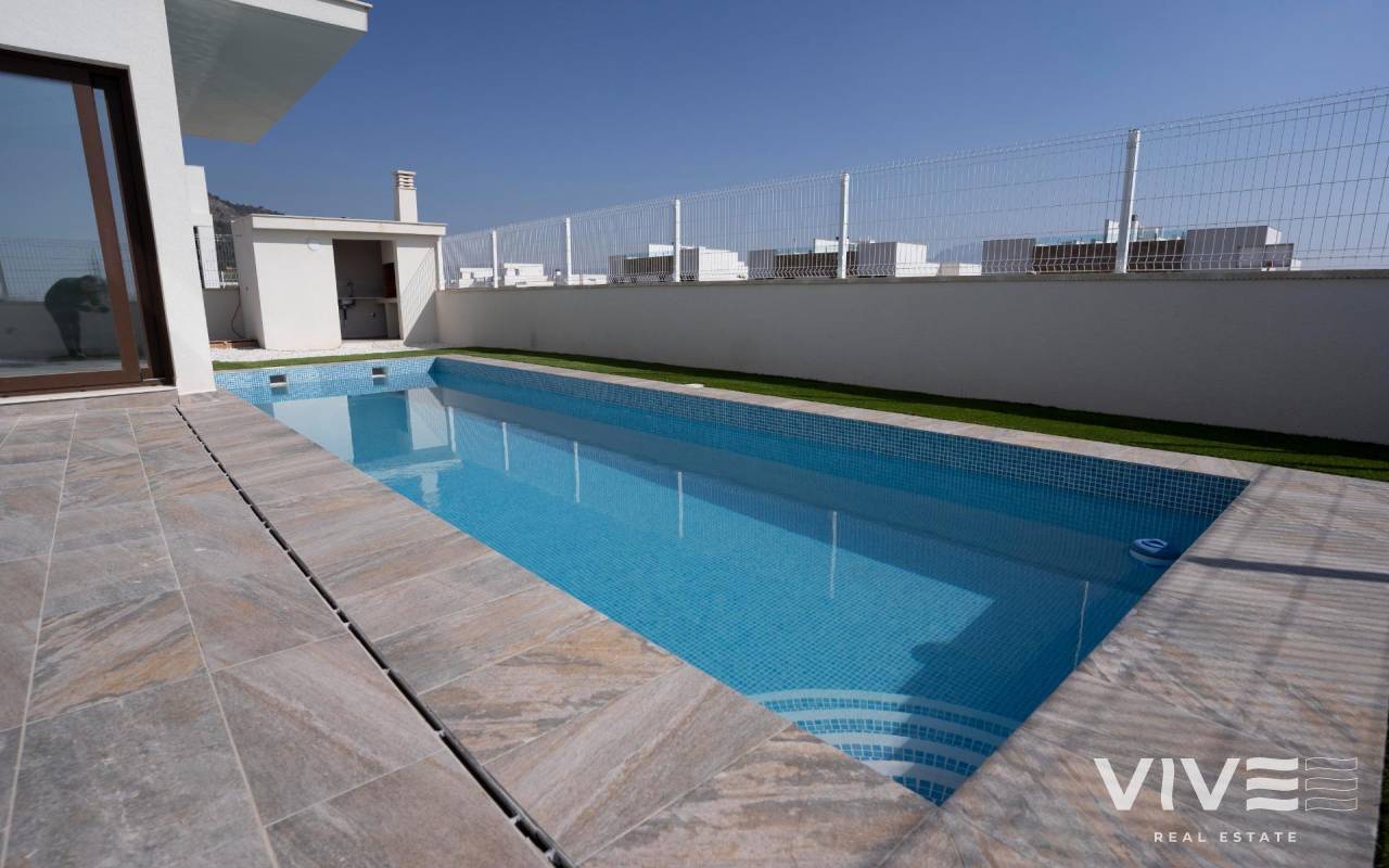 NEW BUILD VILLAS IN POLOP !!! This Villa has been designed to enjoy a VILLA with large plots from 420 to 480 m2 distributed over 120 m2 of living space. The price includes: - Independent plot - Closed perimeter area - Private pool - Parking area with motorized access. - Finished garden, with gravels and ornamental plants - Barbecue The VILLA is distributed over two floors - Ground floor with open kitchen, living room, two bedrooms and a bathroom. - First floor with master bedroom, bathroom en suite and terrace-solarium. Polop is a typical Spanish town 8 km from Benidorm and its beaches and 4 km from La Nucía, considered the city of sports. Mount Ponoig behind these houses not only creates a very favorable microclimate in the area, but also gives you the chance to go on beautiful mountain excursions.