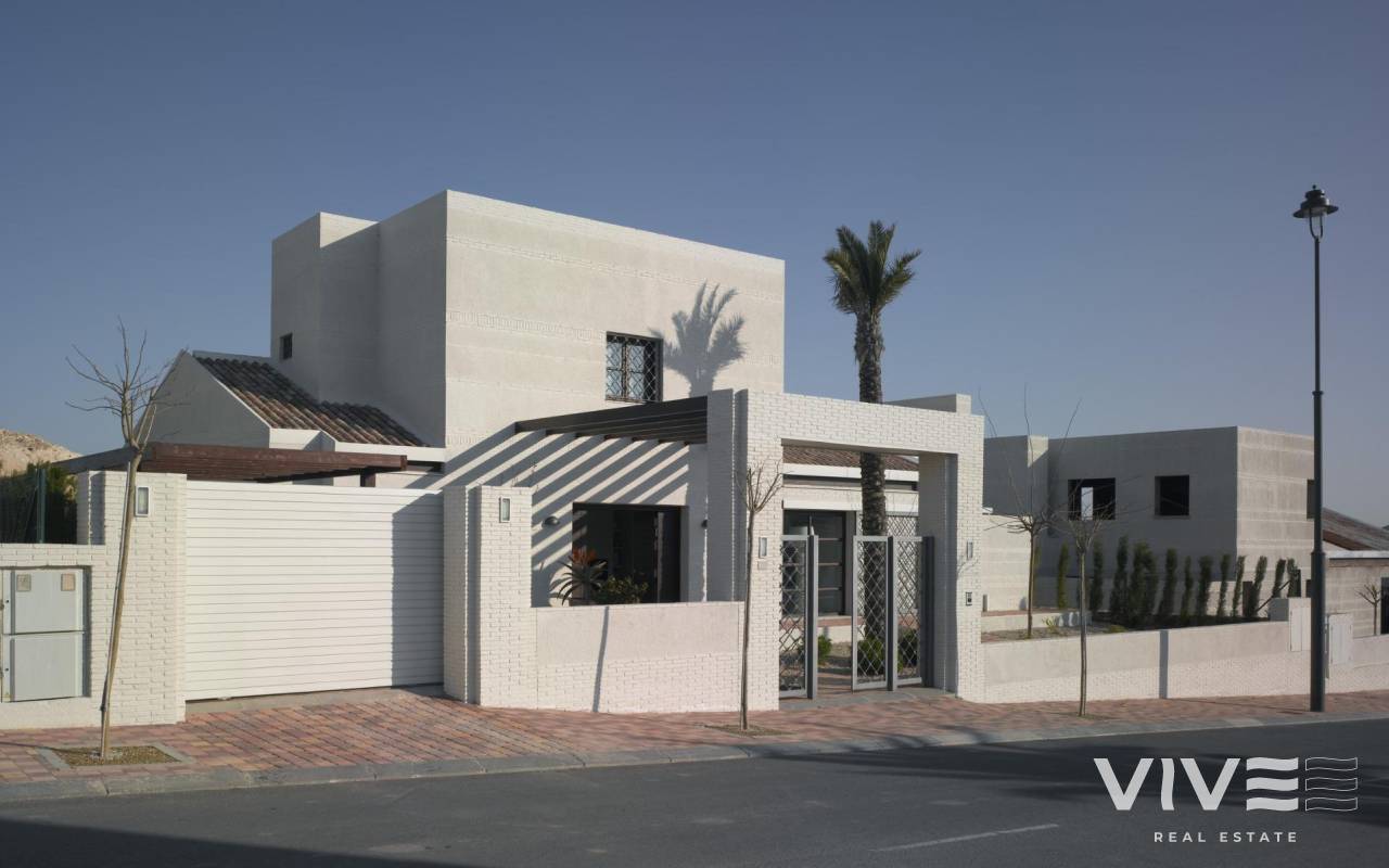 Elegant detached villas with private pool at Peraleja Golf Resort - Costa Cálida Mediterranean-style detached houses in a gated golf community 20 detached villas with 6 models to choose from with 2, 3 or 4 bedrooms and 1, 2 or 3 floors on plots ranging from 375 to 800 m2. Some units have a rooftop solarium. Located in the prestigious Peraleja Golf Resort, in the Murcia region of southern Spain. These modern Mediterranean homes are set on spacious plots, each with a private pool, garden and parking. Designed with sloping roofs and natural materials such as wood and stone, these homes blend seamlessly into the surrounding landscape, while offering elegant and timeless interiors. Comfortable living with top-quality finishes Each house features: Fully fitted open-plan kitchen with appliances Bright living/dining room with a cosy wood-burning fireplace Central air conditioning and gas-fired radiator heating Secure entrance door and motorised access gate for vehicles Private swimming pool (3.5x5.5 m) with outdoor shower Outdoor water points and lighting Fully landscaped garden ready to enjoy These properties have been carefully designed by a renowned architect, combining elegant lines with natural textures, creating a unique and harmonious environment within a secure gated community. Life at Peraleja Golf Resort - Nature and security The houses are located within Peraleja Golf Resort, which has a 24-hour security gate, piano bar and clubhouse with gourmet restaurant. The complex is surrounded by protected natural areas where hiking, jogging and cycling trails are being developed for residents. The 18-hole golf course, originally designed by the legendary Severiano Ballesteros, is currently being renovated and is scheduled to reopen in late 2025. Some homes and the social club enjoy distant sea views. Convenient location close to beaches and towns This peaceful complex offers excellent access to key locations: Towns of Sucina and Avileses - 3-5 km Mar Menor beaches - 20 km (20 min by car) City of Murcia - 25 km (20 min by car) Murcia Airport (RMU) - 25 km (15 min by car) Alicante Airport (ALC) - 80 km (45 min by car) La Zenia Boulevard Shopping Centre - 35 km Enjoy the charm of the Costa Cálida Located near the traditional Spanish town of Sucina, residents can enjoy local shops, restaurants and authentic charm, while still being close to the coast and vibrant city life. This area has become increasingly popular with international buyers for its quality of life, good infrastructure, wonderful year-round climate and access to natural landscapes and the sea. Contact us today to secure your dream villa in Peraleja Golf and start enjoying life on the Costa Cálida.