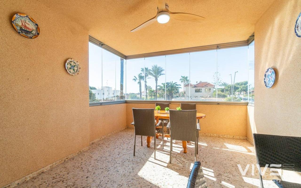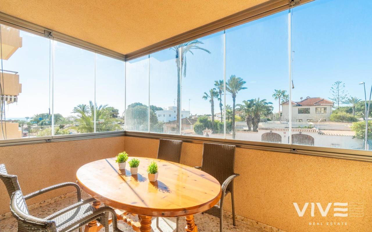 Discover this charming apartment in Orihuela Costa, located in the idyllic area of La Zenia. It's just 300 meters from one of the best beaches on the Mediterranean and a short walk from the Zenia Boulevard shopping center, shops, a pharmacy, bars, and restaurants.. . The property is situated in an apartment building with a communal pool and gardens. It also includes parking within the communal area and a private, enclosed garage/storage room in the building's basement. This is especially important during the summer months when parking is more difficult and the population is higher, allowing you to easily park your vehicle and have space to store your car, suitcases, bicycles, and other belongings in your private garage.. . This retreat, perfect for year-round living or holidays, faces south-southwest and features a glazed terrace facing the morning sun and another glazed terrace facing the afternoon sun. During the winter, you can use them as a solarium, and the heat from these glazed outdoor areas can maintain a wonderful temperature in the rest of the house. In summer, the glass panels of the enclosures can be opened to let the sea breeze into the property for optimal ventilation.. . The house itself offers three comfortable double bedrooms, all of a good size and with built-in wardrobes, and two bathrooms with showers for greater convenience and easy access.. . The newly renovated and fully equipped kitchen is ready to inspire your culinary adventures and has a separate, enclosed utility room next to it so you can use the washing machine without disturbing the rest of the house. All of this opens onto a large living-dining room next to the spacious and bright main glazed terrace mentioned earlier.. . The white PVC windows with double glazing add comfort and both thermal and acoustic insulation for greater peace of mind and to enjoy the house all year round.. . This charming apartment features air conditioning in the bedrooms for comfortable sleep on warmer days, built-in wardrobes for added convenience, and two balconies perfect for enjoying a glass of wine at sunset.. . Located on a quiet corner, this apartment offers unobstructed views that invite relaxation. Just steps away, you'll find essential amenities such as buses, shops, medical centers, schools, golf courses, hospitals, and parks. La Zenia is a vibrant and lively town, ideal for an unforgettable holiday.. . This apartment is the perfect choice for those seeking a permanent residence for their family or a holiday retreat where comfort and convenience meet the charm and beauty of the Mediterranean.. . Price €189,900. Taxes and purchase expenses not included (according to applicable regulations). A breakdown of additional costs will be provided before booking.