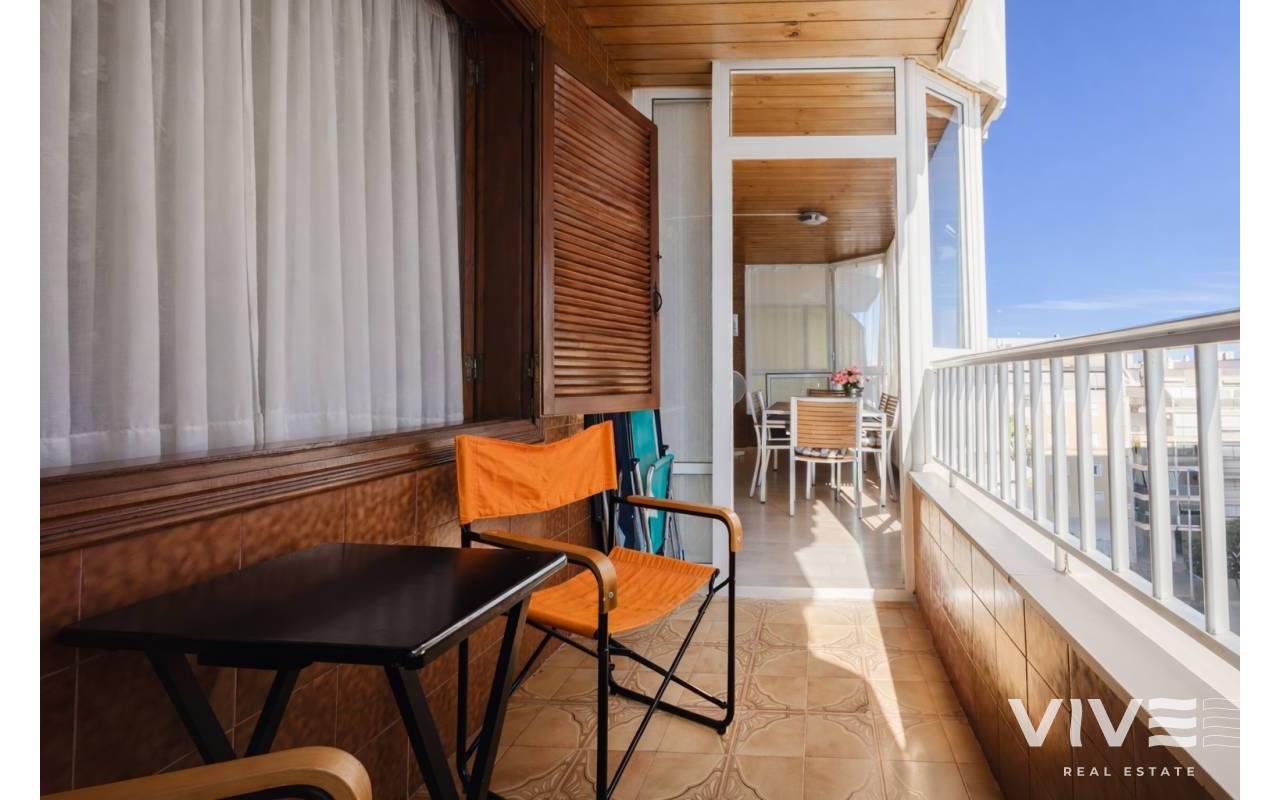 Discover this spacious and bright fifth-floor apartment in Playa del Acequión, Torrevieja, ideal both as a permanent residence and a holiday investment.With 100 m² built, this property stands out for its comfort, prime frontline beachfront location, and spectacular sea views. Built in 1980 and in good condition, it is sold furnished and ready to move into.Its northeast orientation ensures a pleasant temperature throughout the year.Key features100 m² built area3 spacious bedrooms2 full bathrooms15 m² terraceSeparate kitchenNortheast orientationSea viewsFrontline beachfrontPrivate beach accessCommunal swimming poolLiftFurnishedProperty tax (IBI) €306 / Community fees €420 per yearAdditionally, it is surrounded by shops, pharmacies, shopping centers, bars, and restaurants, ensuring excellent quality of life and daily convenience.A unique opportunity to enjoy the Mediterranean lifestyle with more than 300 days of sunshine per year.