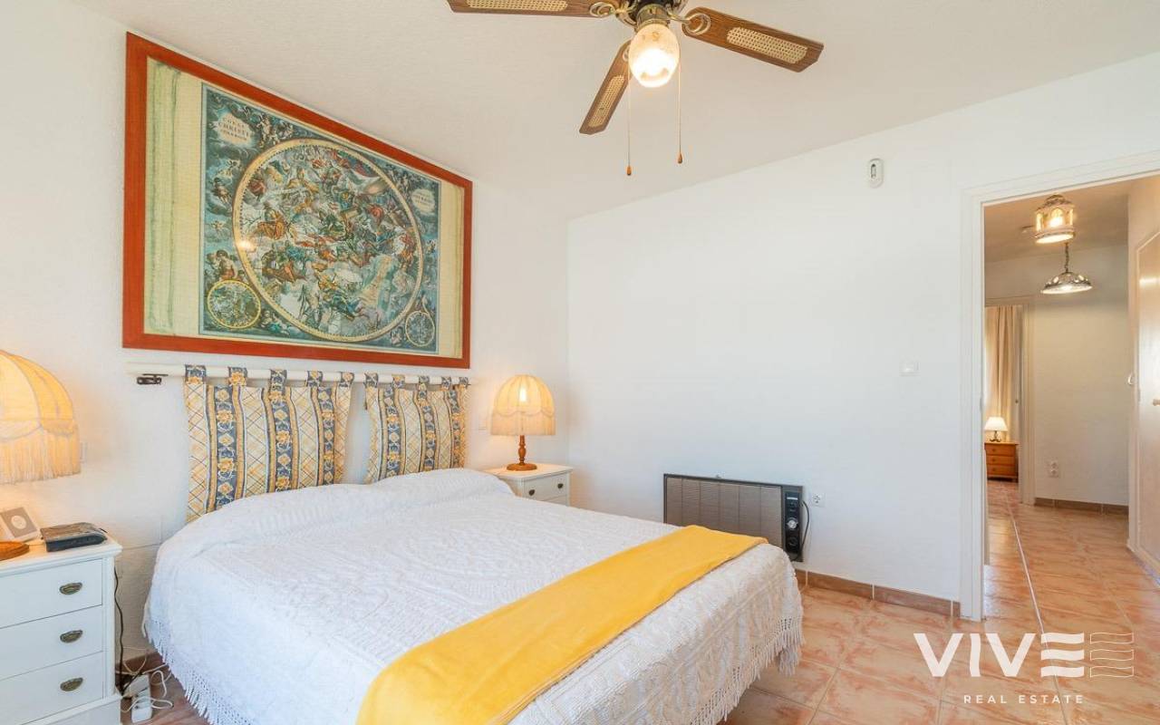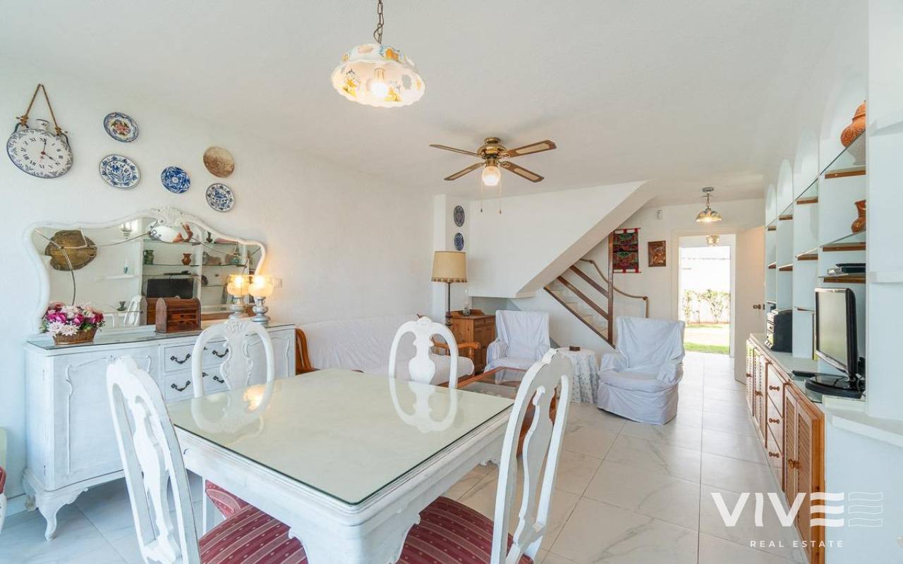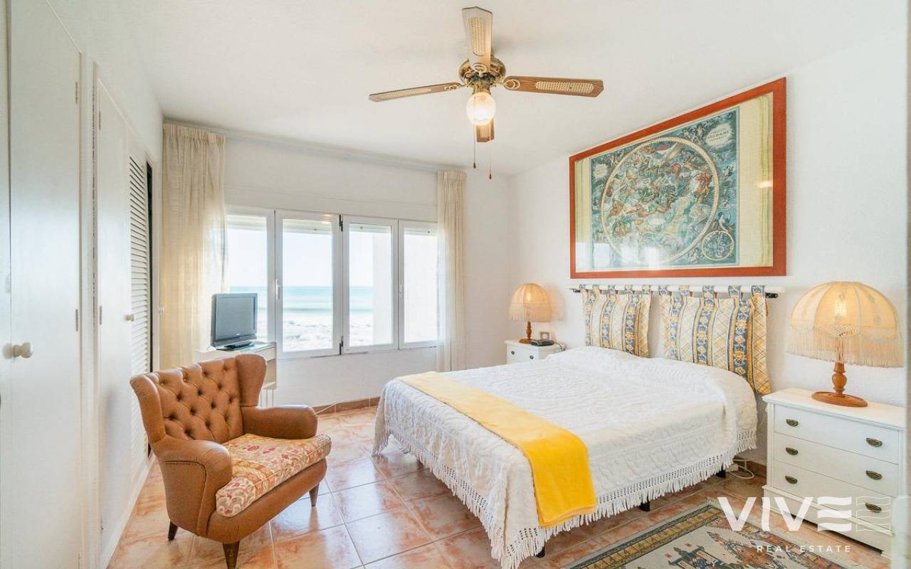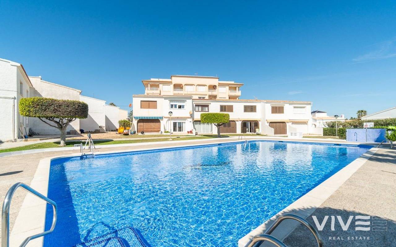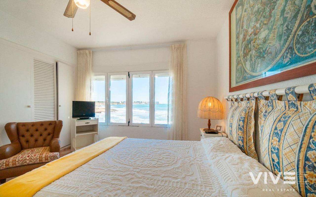 Discover a unique gem on the seafront in the prestigious area of Playa Flamenca, where properties rarely come onto the market due to its privileged cliffside location.. . This charming townhouse, with 90 m2 built, offers an unparalleled Mediterranean lifestyle. On the ground floor, you will find a spacious living room filled with natural light, featuring a large front window with direct access to the garden, where you can enjoy open views and the soothing sound of the sea. The kitchen is independent, practical, and perfectly suited for everyday living. At the entrance, there is also a cozy private garden that adds a welcoming touch.. . Upstairs, there are two spacious double bedrooms. The master bedroom is truly exceptional: imagine waking up and enjoying sea views directly from your bed. This floor also includes a fully equipped bathroom.. . The property is part of an exclusive residential complex with a communal swimming pool, perfect for enjoying the Mediterranean climate all year round. In this highly sought-after area, where properties are rarely available, this home represents a unique opportunity both as a permanent residence or an investment.. . Living here means embracing a seafront lifestyle in one of the most desirable locations in Orihuela Costa.. . A truly exceptional property where the sea becomes part of your home.. . Price: €390,000. Taxes and purchase costs not included (according to applicable regulations). A detailed breakdown of additional costs will be provided prior to reservation.