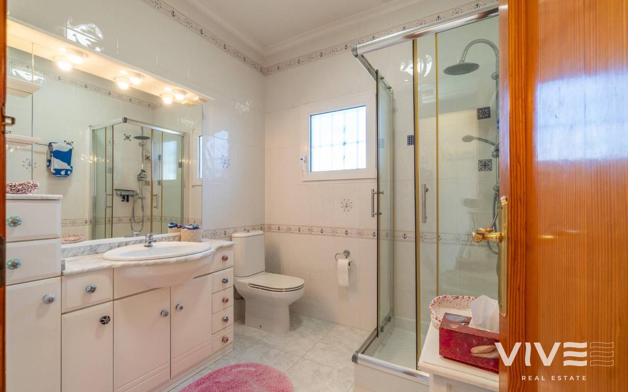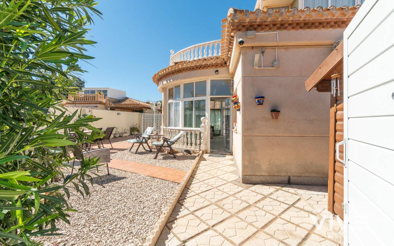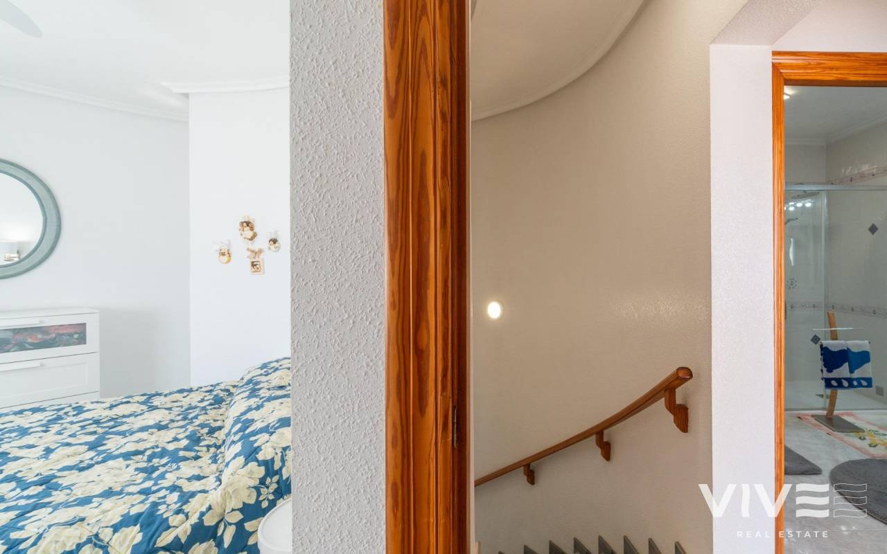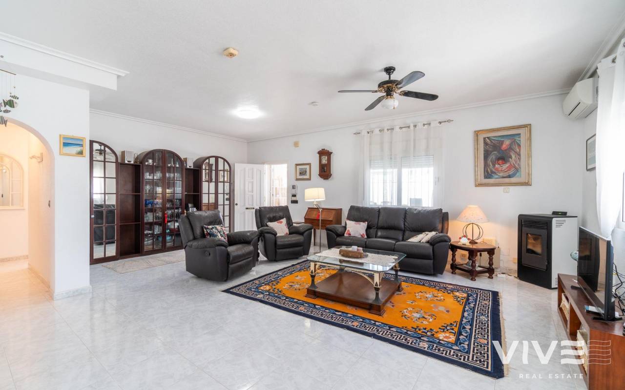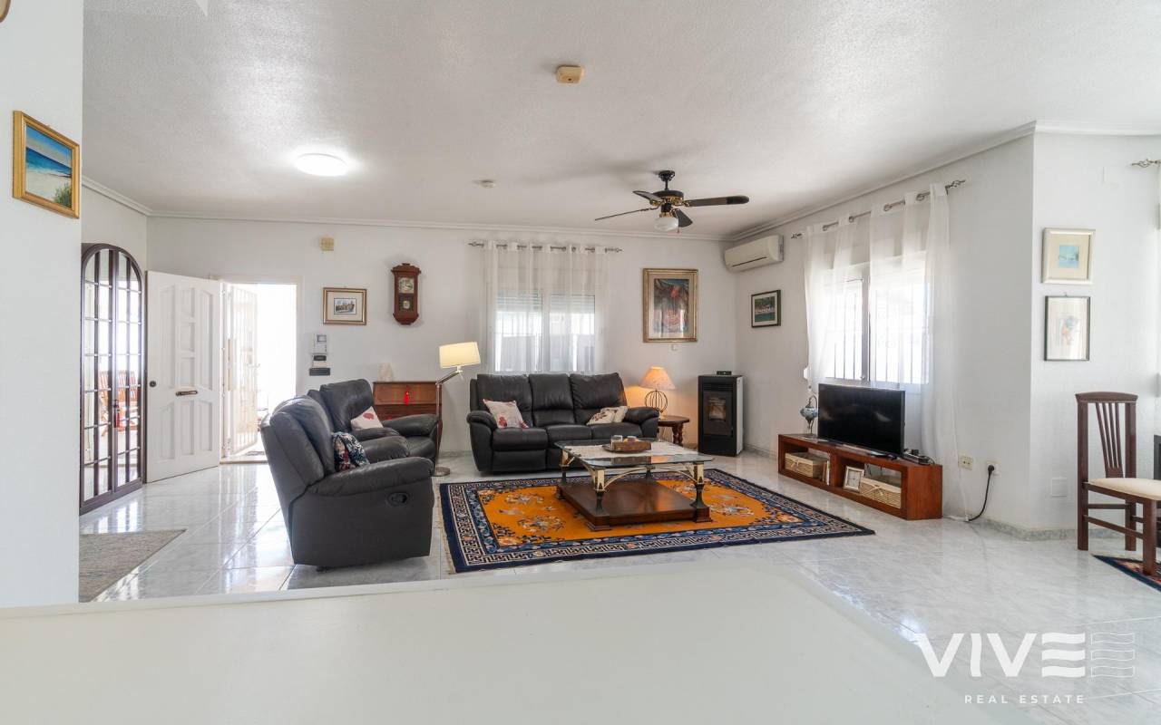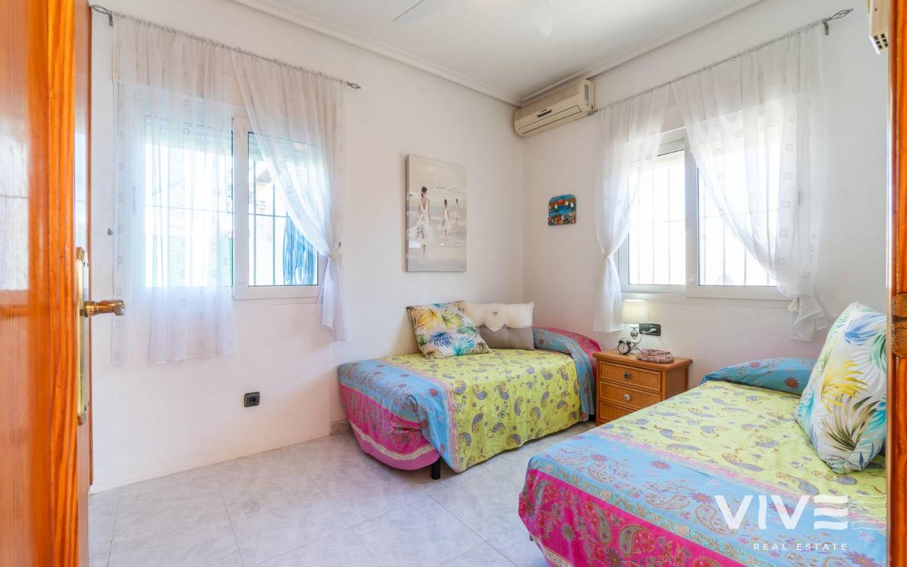 This large detached villa, situated on a 500 m2 plot with over 190 m2 of living space, is superbly located in the heart of Playa Flamenca. It is truly within walking distance of everything: supermarkets, municipal and private sports facilities, the Zenia Boulevard shopping center, a public school, the town hall, shops, doctors, and the beaches of Orihuela Costa.. . The Saturday market is very close, with direct walking access, allowing you to enjoy shopping for fruits, vegetables, and traditional products while experiencing the atmosphere of a small Spanish village. At the same time, you can easily access the property by car without encountering road closures.. . The 500 m2 plot, as mentioned, offers numerous possibilities for enjoying the outdoor space, including a swimming pool, barbecue, outdoor kitchen, solarium, pergolas, parking, and more. Maintenance is very easy, with terraces, artificial grass, and gravel areas, ensuring that keeping your garden and outdoor areas in perfect condition requires minimal effort.. . The property features on-site parking with automatic gates and a private garage/storage area to keep your vehicle protected from the Alicante sun. The pool area is perfect for sunbathing in privacy, while the built-in barbecue and wooden pergola allow you to fully utilize the plot's potential, thanks to its southern exposure and sun exposure throughout the day. This also ensures abundant natural light throughout the property's daytime living areas.. . There is a glazed solarium terrace at the entrance to the house, but with its traditional clay tile roof. In winter, when the sun is lower, it can be used for sunbathing, and in summer, by opening the glass windows and enjoying the shade of the roof, it becomes a cool and airy space where you can relax with a book and spend time with family in a semi-covered outdoor area. From this covered terrace with arches, you enter the main house with its large living-dining room, featuring a fireplace and south-facing windows for maximum natural light and sunshine, and a semi-independent kitchen with a breakfast bar and an adjacent utility room that combines pantry and laundry space.. On the same ground floor, the house has two spacious bedrooms with built-in wardrobes, a bathroom with a walk-in shower, and the staircase leading to the upper floor.. . Upstairs, you'll find the large master bedroom overlooking its own garden and swimming pool, a large bathroom with a walk-in shower, and a large glazed space perfect for a playroom, office, guest room, or any other use. This is complemented by the rest of the solarium, which offers sea views and a south-facing orientation, ensuring sunshine all day long.. . In short, this is a detached villa in a central and well-connected location, with outdoor areas for leisure and family enjoyment. It is in perfect condition and ready to move into, and a visit is well worth it to appreciate its excellent features.. . Price: €640,000. Taxes and closing costs not included (according to applicable regulations). A breakdown of additional costs will be provided before booking.. . In the case of a transaction with two intermediaries, the buyer's professional fees will be 1.5% of the final purchase price, with a minimum of €3,000, plus VAT (21%), unless expressly agreed otherwise. These fees are not included in the advertised price.