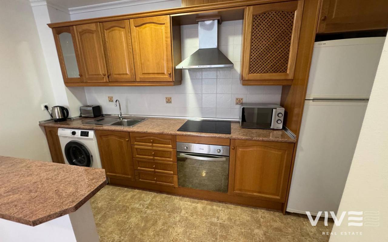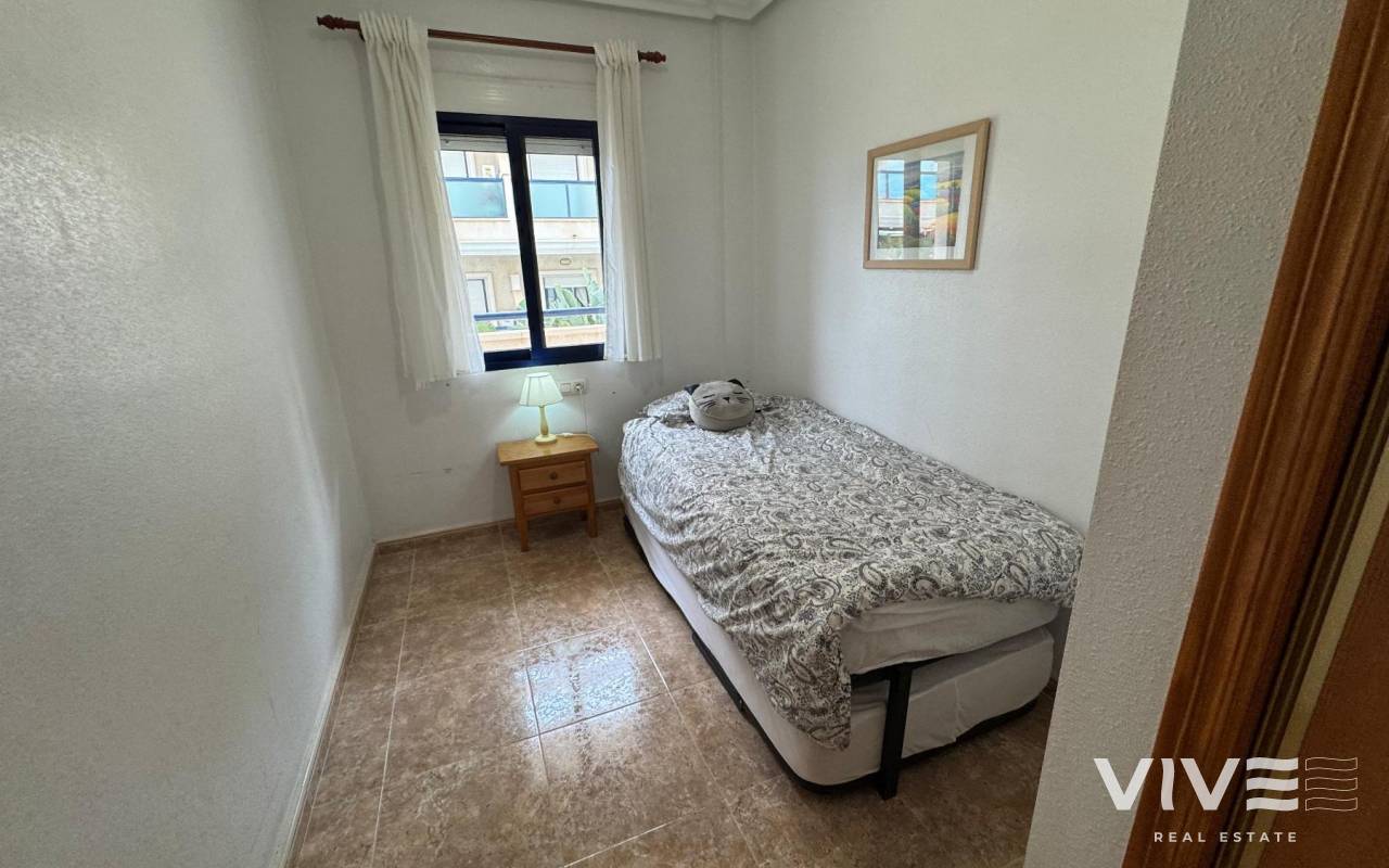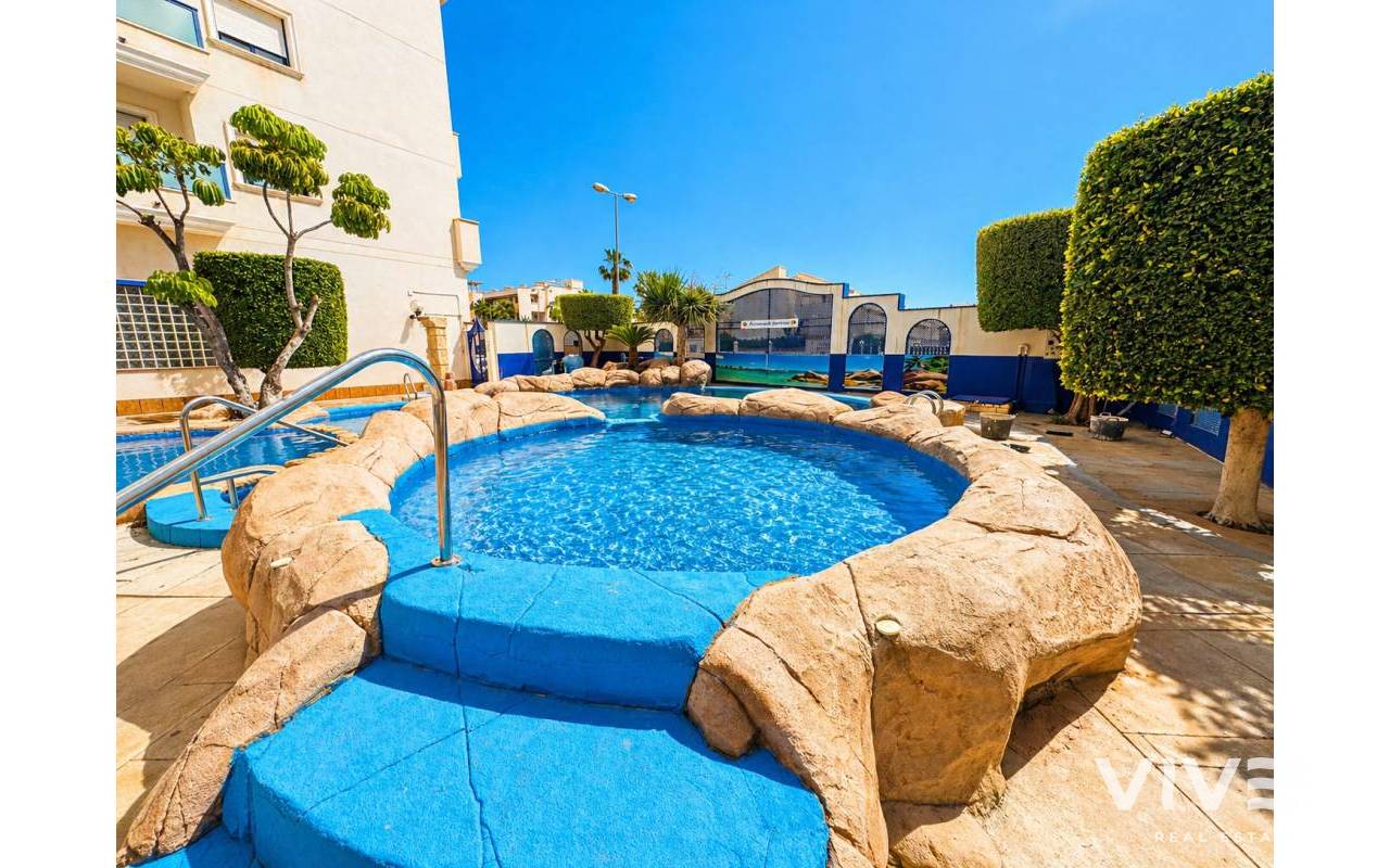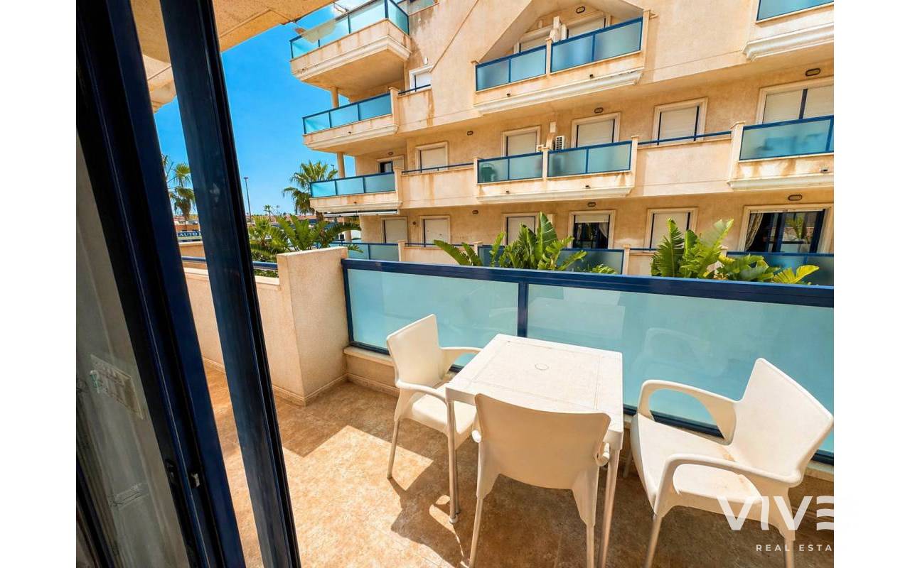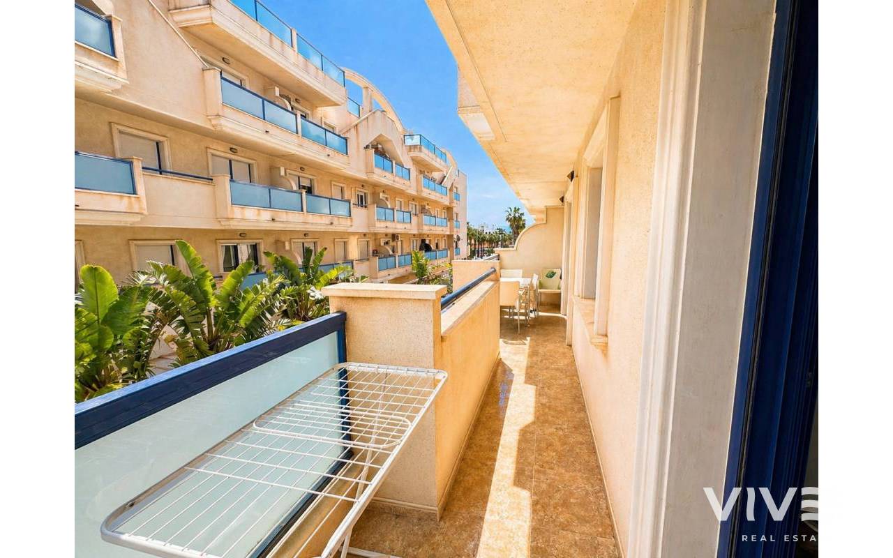 Prime Apartment in Cabo Roig Strip Tourist License, Balcony and Private ParkingDiscover this fantastic 2-bedroom, 1-bathroom tourist apartment located in the prestigious Playamarina Aparthotel in Cabo Roig, right on the main avenue, surrounded by bars, restaurants, shops, and all the leisure options that make this area one of the most sought-after destinations on the Costa Blanca.The property is situated in a secure gated complex with reception, communal swimming pool, and landscaped gardens, making it ideal both for holidays and as an investment opportunity. 2 bedrooms 1 bathroom 99 m² built Communal swimming pool Numbered underground parking space Lift Open-plan kitchen Built-in wardrobes Fully furnished terrace Northeast facing Communal gardenIn addition, it features smart WiFi air conditioning, allowing remote temperature control for greater comfort and energy efficiency. An excellent opportunity with high rental potential in a prime location in Cabo Roig.