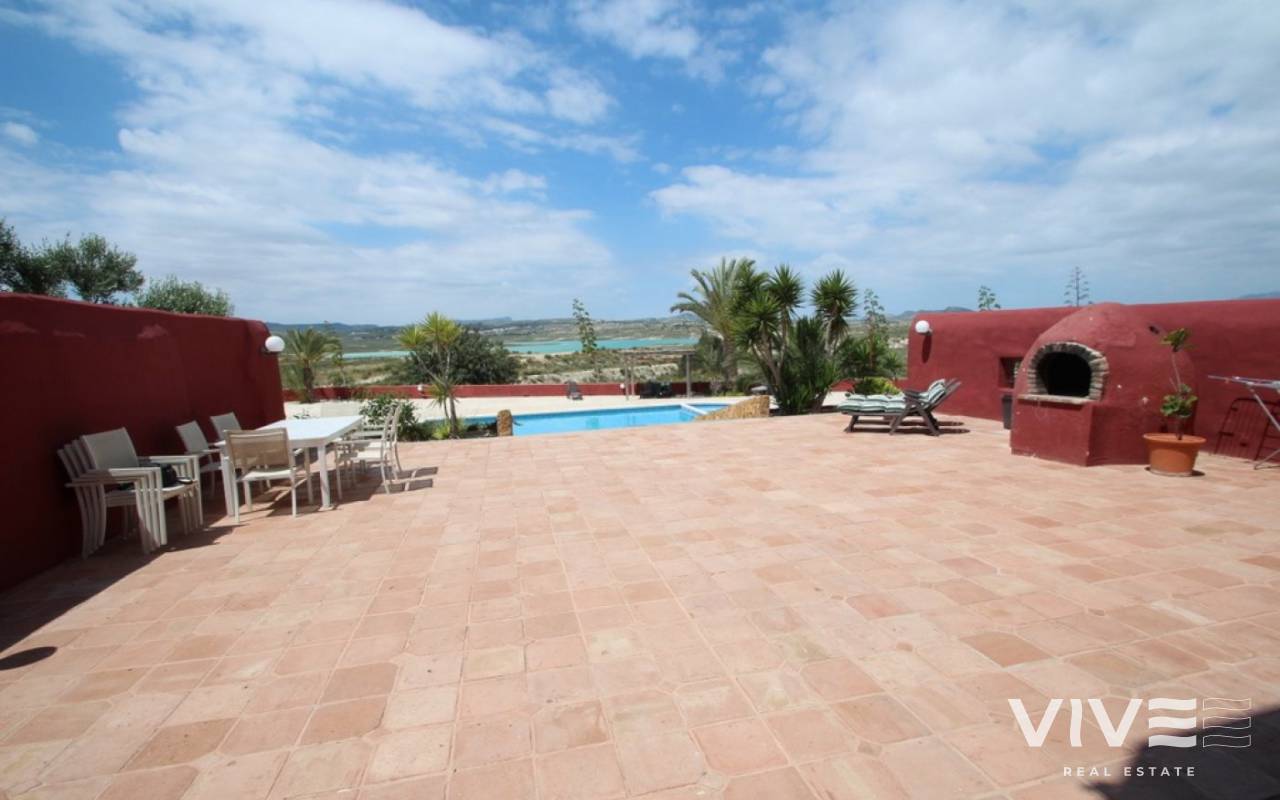 Opportunity to live in a unique place and with the possibility of having your own business.. In front of the La Pedrera reservoir, we offer you an impressive independent Chalet on a plot of 13,700 meters and with a house of 320 meters with stunning views of the reservoir.. This impressive house is distributed on two floors with two living rooms with fireplace, one of them very large of 85 m2, kitchen with its island, 4 bedrooms, 3 bathrooms, 1 toilet, solarium and a large porch overlooking the orange trees, large terrace with barbecue and pool of 15 x 7 m, facing the lake.. There is possibility to expand the house on the top floor.. The interior design has been made by Philip Pelleter, internationally recognized that appears in the book Interior Design Review.. The house is sold fully furnished with antique furniture doors of India ....