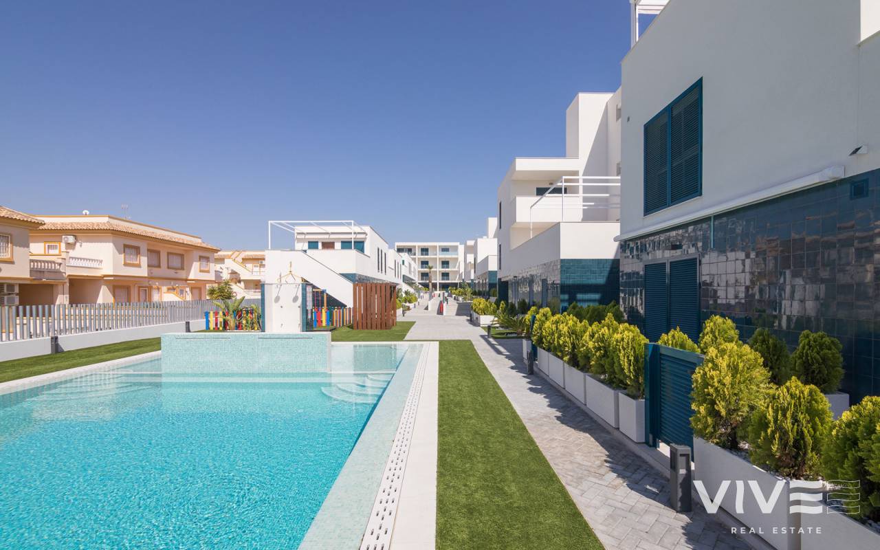 I Turquesa de Mar bor man i ett trevligt gated community (inhägnat privat område) där boende kan avnjuta trevliga stunder i harmoniska poolområdet som omgivs av palmer, grönska, pool för både de små och stora, lekyta med rutschkana och matplats med pergola.