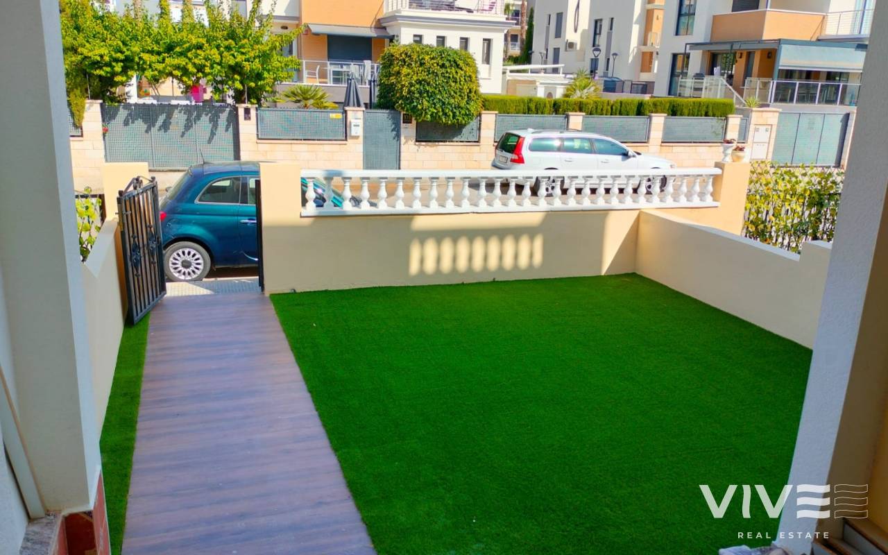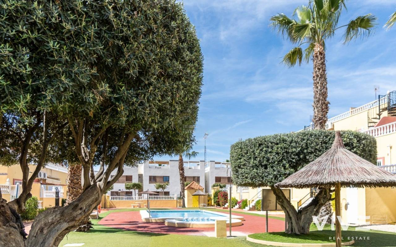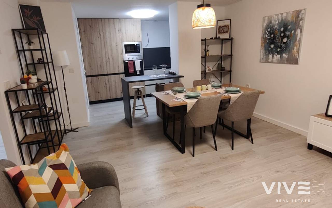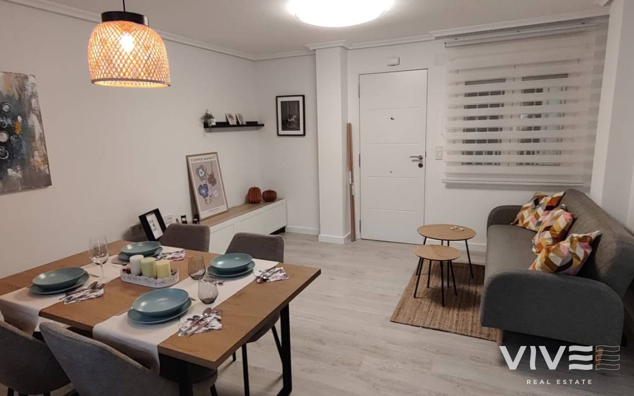 Totalrenoverad och inflyttningsklar i La Zenia (Orihuela Costa). 67,8 m² boyta plus 12,2 m² terrass (80 m² totalt), 2 sovrum och 1 badrum. Säljs möblerad med belysning, tavlor, handdukar och textilier. Lugnt bostadsområde med 2 gemensamma pooler och grönområden.